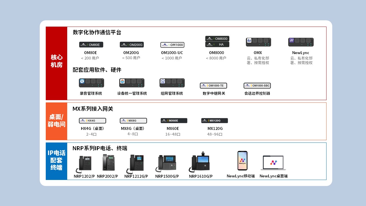 · 通过模拟/数字中继、SIP/IMS线路等方式接入运营商