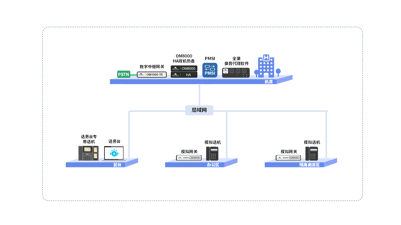 根据项目建设需求,迅时提供了以OM8000融合通信平台为核心的高可靠IP语音系统方案: