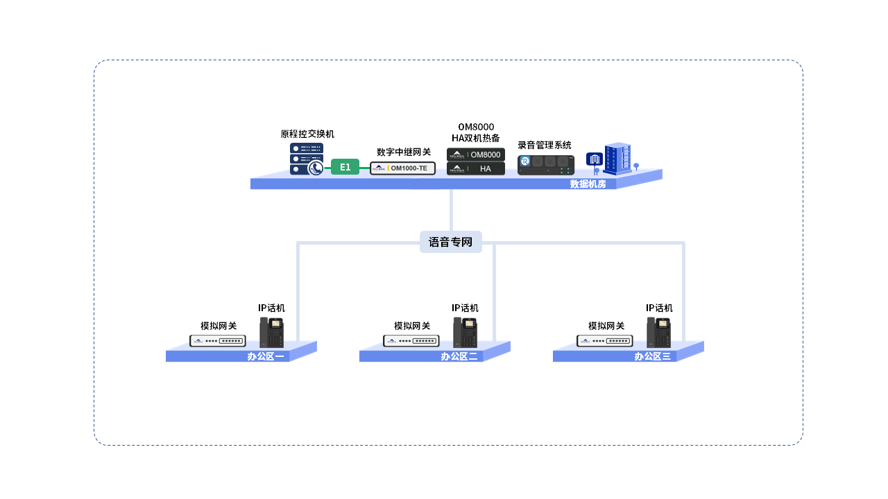 了解到上海天文馆语音系统需要与总部和运营商多种外线连接,同时需要录音备存的需求后,迅时为其定制了以下方案: