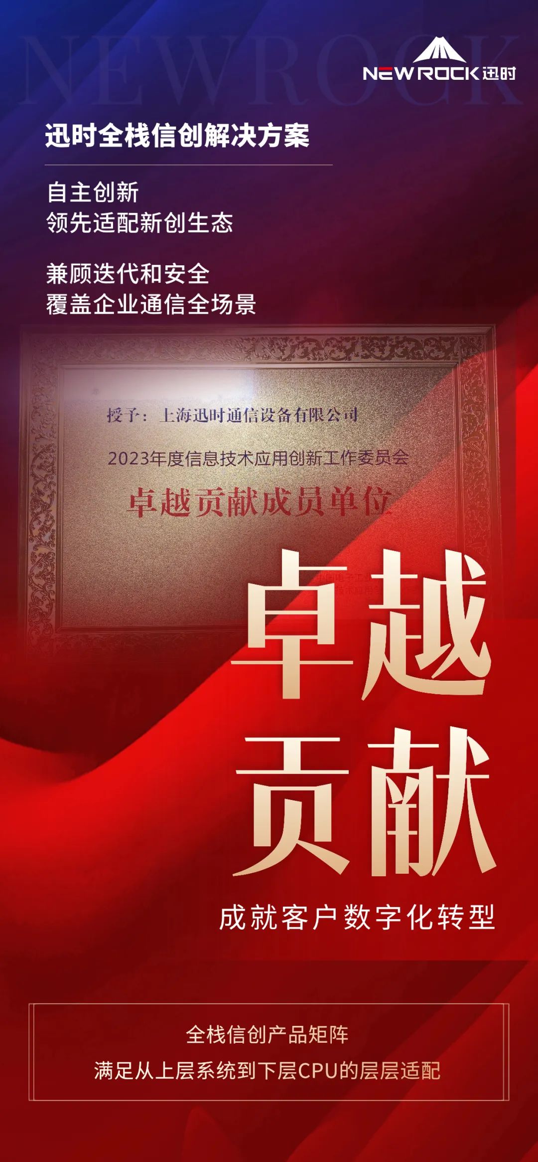 作为信创工委会成员单位,迅时始终以通信关键技术研发为核心,坚持自主创新,同时在终端产品及行业解决方案上领先适配信创生态。