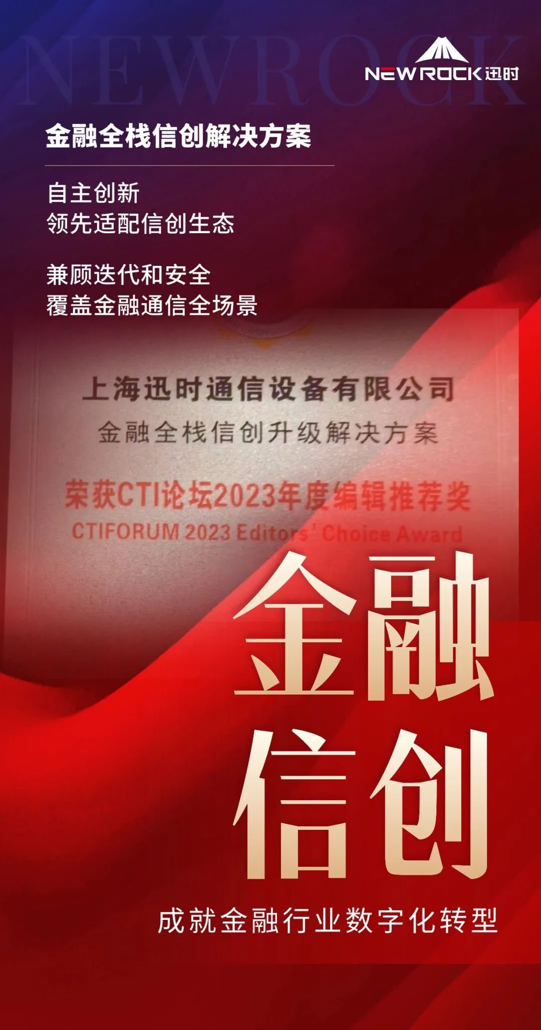 迅时的“金融全栈信创升级解决方案”以其创新性和实用性在众多参选产品中脱颖而出。凭借在金融行业的深厚积累和创新实力,迅时“金融全栈信创升级解决方案”,不仅提升了金融服务的效率和安全性,更在推动金融行业数字化转型方面发挥了重要作用。