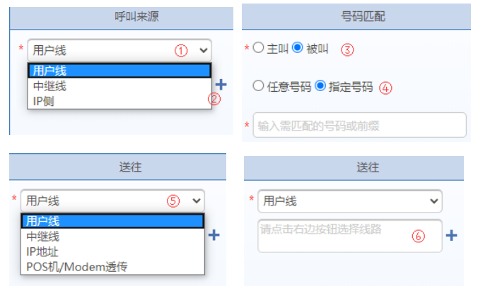 ③、匹配主叫号码还是被叫号码;