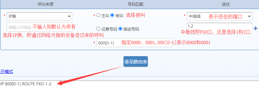 例如:IP 800[0-1] ROUTE FXO 1-2