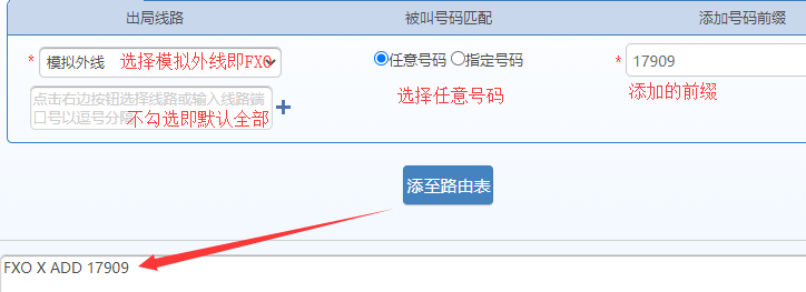 模拟外线呼出,被叫增加前缀17909