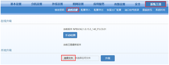 登录设备后,点击“系统工具—软件升级”,按下表选择对应软件进行升级。升级完成后,设备将自动重启。