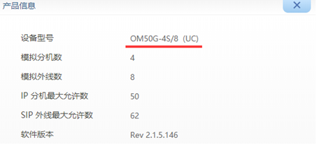 再次登录设备,点击右上角的“产品信息”,若许可上传成功,可在设备型号中看到UC字样。
