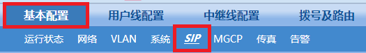 步骤2.登录语音网关的Web管理界面,在“基本设置>SIP”页面下,配置外网终端穿透注册地址及端口;