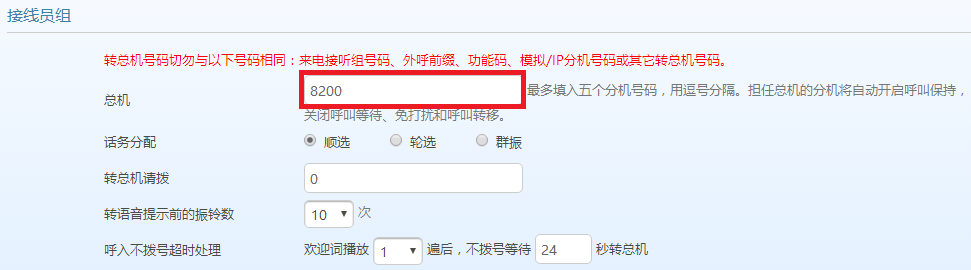 点击“基本设置>总机>接线员组”。