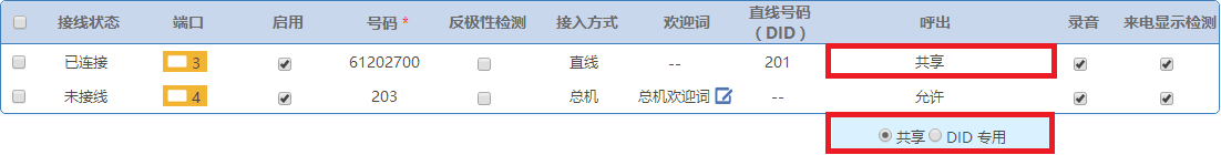 登录设备,点击“外线设置>模拟外线”。在“接入方式”下拉选项中选择“直线”后,设置“直线号码”及“呼出”方式。