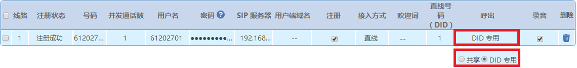 登录设备,点击“外线设置>SIP外线”。在“接入方式”下拉选项中选择“直线”后,设置“直线号码”及“呼出”方式。