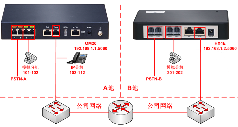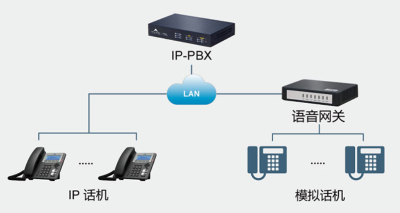 扩展的模拟分机可以与IP分机直拨互打,能够通过IP-PBX上的中继线路拨打和接听外部电话,能够使用IP-PBX的各种通信功能。