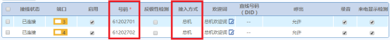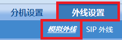 点击“外线配置>模拟外线”,输入对应的模拟外线号码,接入方式选择总机,并保存。