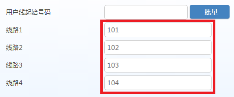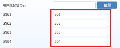 点击“用户线配置>用户线号码”,设置A地设备的分机号码,并保存。